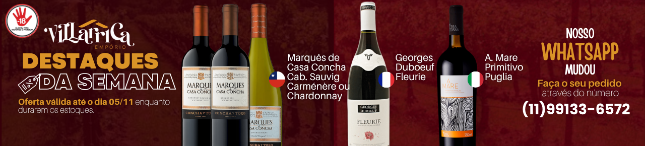 Destaques do Villa VI CHI CASILLERO DARK RED 750 Por : R$ 99,90 Adicionar ao Carrinho Comprar VI FRA CLAUDE VAL ROUGE 750 ML Por : R$ 109,90 Adicionar ao Carrinho Comprar VI FRA CLAUDE VAL BLANC 750 ML Por : R$ 109,90 Adicionar ao Carrinho Comprar VI CHI COYAM EMILIANA 750 ML Por : R$ 289,90 Adicionar ao Carrinho Comprar Novidades no Site VI ARG ACHAVAL FERR CAB FRANC 750 Por : R$ 239,90 Adicionar ao Carrinho Comprar LICOR ITA BOTTEGA NERO CACAU 500 ML Por : R$ 199,90 Adicionar ao Carrinho Comprar LICOR ITA BOTTEGA TIRAMISU 500 ML Por : R$ 229,90 Adicionar ao Carrinho Comprar SAKE HAKUSHIKA 720 ML Por : R$ 139,90 Adicionar ao Carrinho Comprar SAKE GEKKEIKAN SILVER 750 ML Por : R$ 149,90 Adicionar ao Carrinho Comprar SAKE AZUMA KIRIN SOFT 740 ML Por : R$ 39,90 Adicionar ao Carrinho Comprar SAKE AZUMA KIRIN DOURADO 740 ML Por : R$ 45,90 Adicionar ao Carrinho Comprar