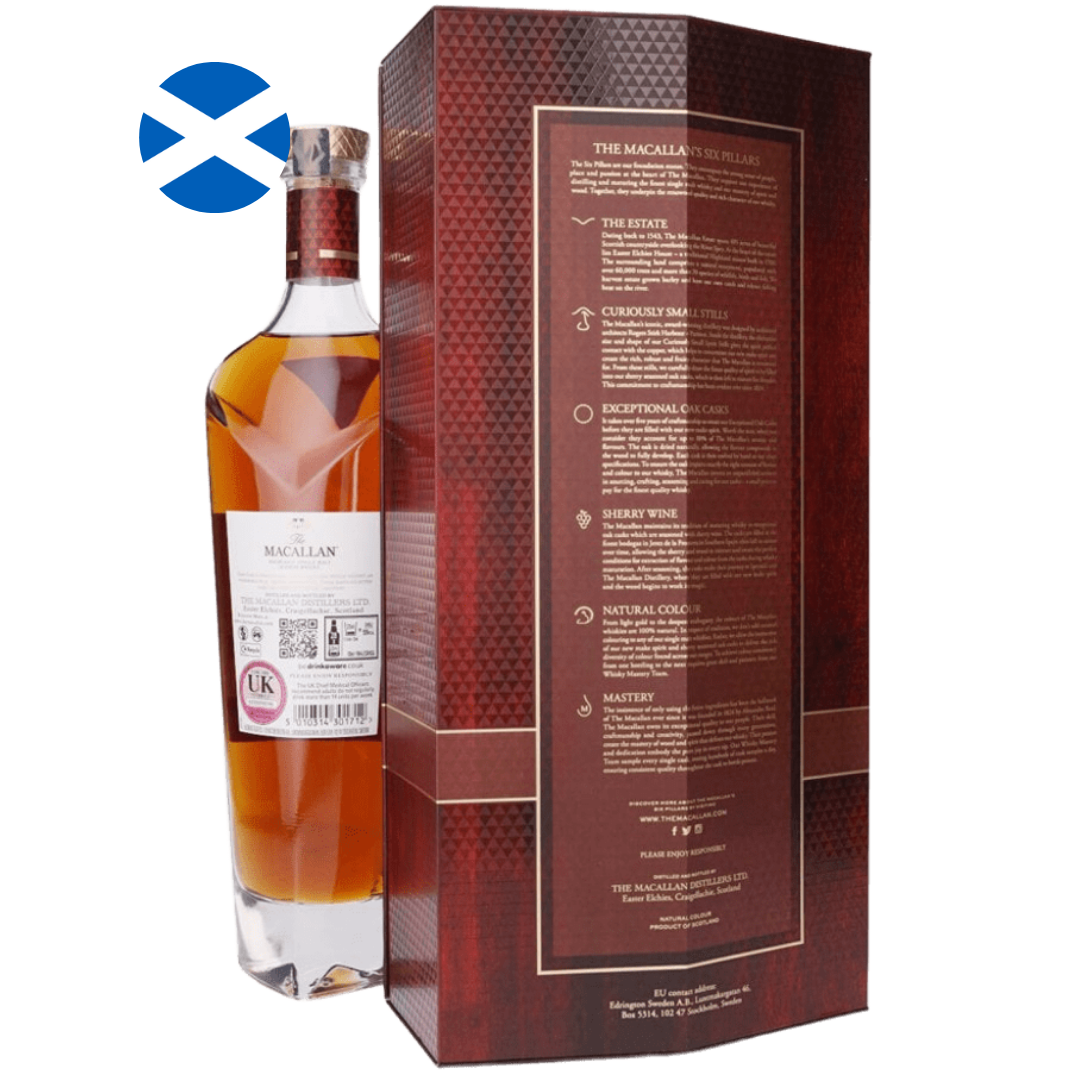 Sem declaração de idade, mas com altíssimo controle de qualidade e um processo rigoroso de curadoria, o Rare Cask entrega uma experiência sensorial profunda, elegante e envolvente — voltada para verdadeiros apreciadores da alta escola escocesa de destilados. Um single malt exclusivo, sofisticado e com uma assinatura olfativa e gustativa que honra a reputação da Macallan em cada gole.